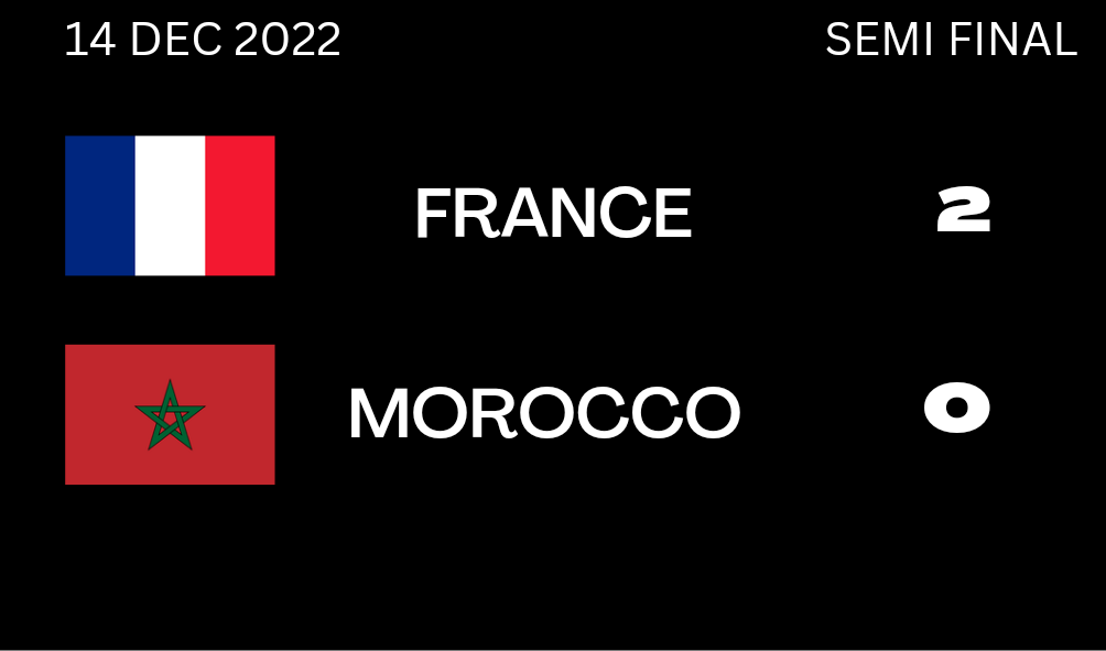 In the other semifinal, France defeated Morocco, who had hoped to become the only African country to enter the FIFA World Cup finals. France won by 2-0. The goal scorers were Theo Hernandez and Kolo Muani from the French side. Morocco remained goal-less despite a good effort.